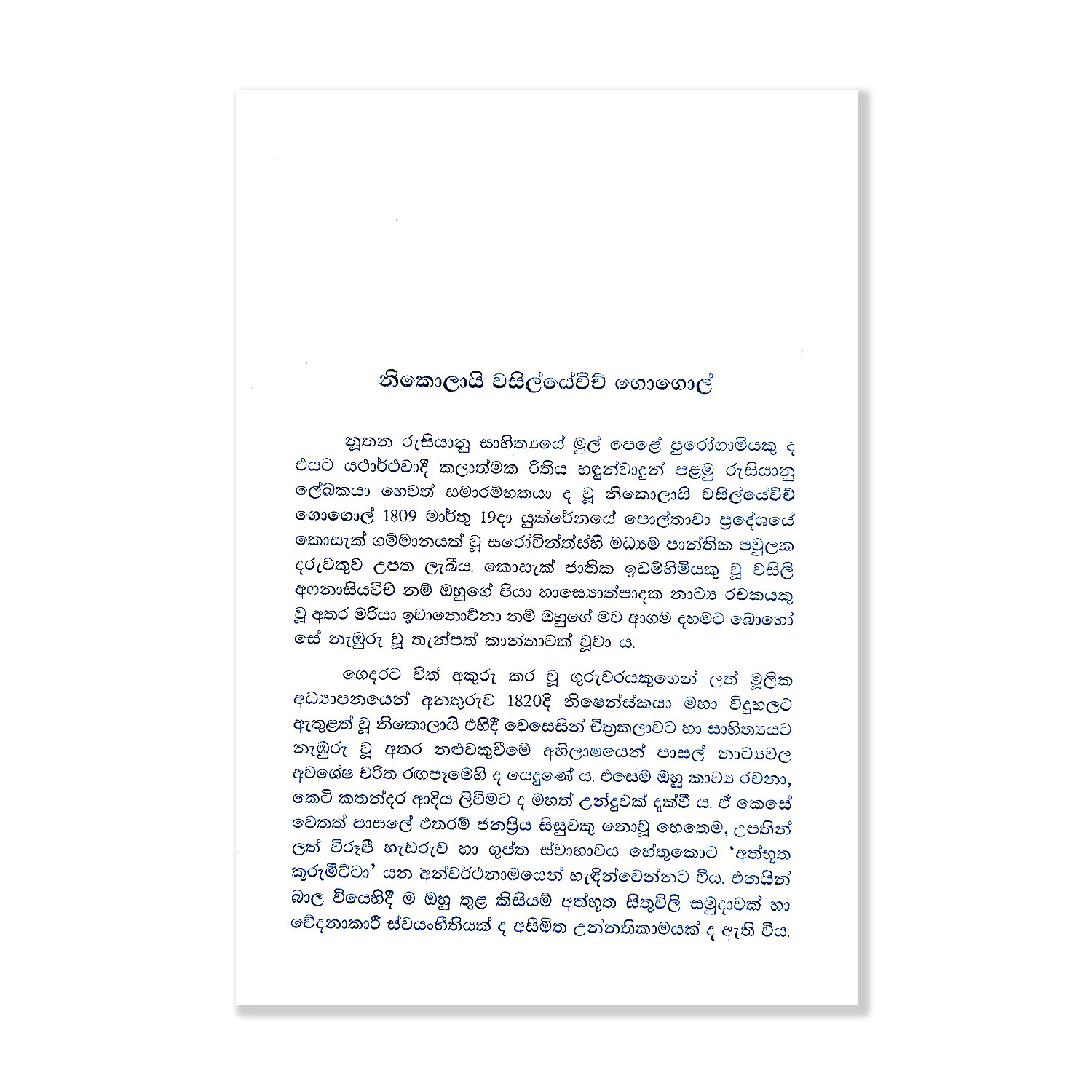 | Author | : | නිකොලායි ගොගොල් – Nikolai Gogol |