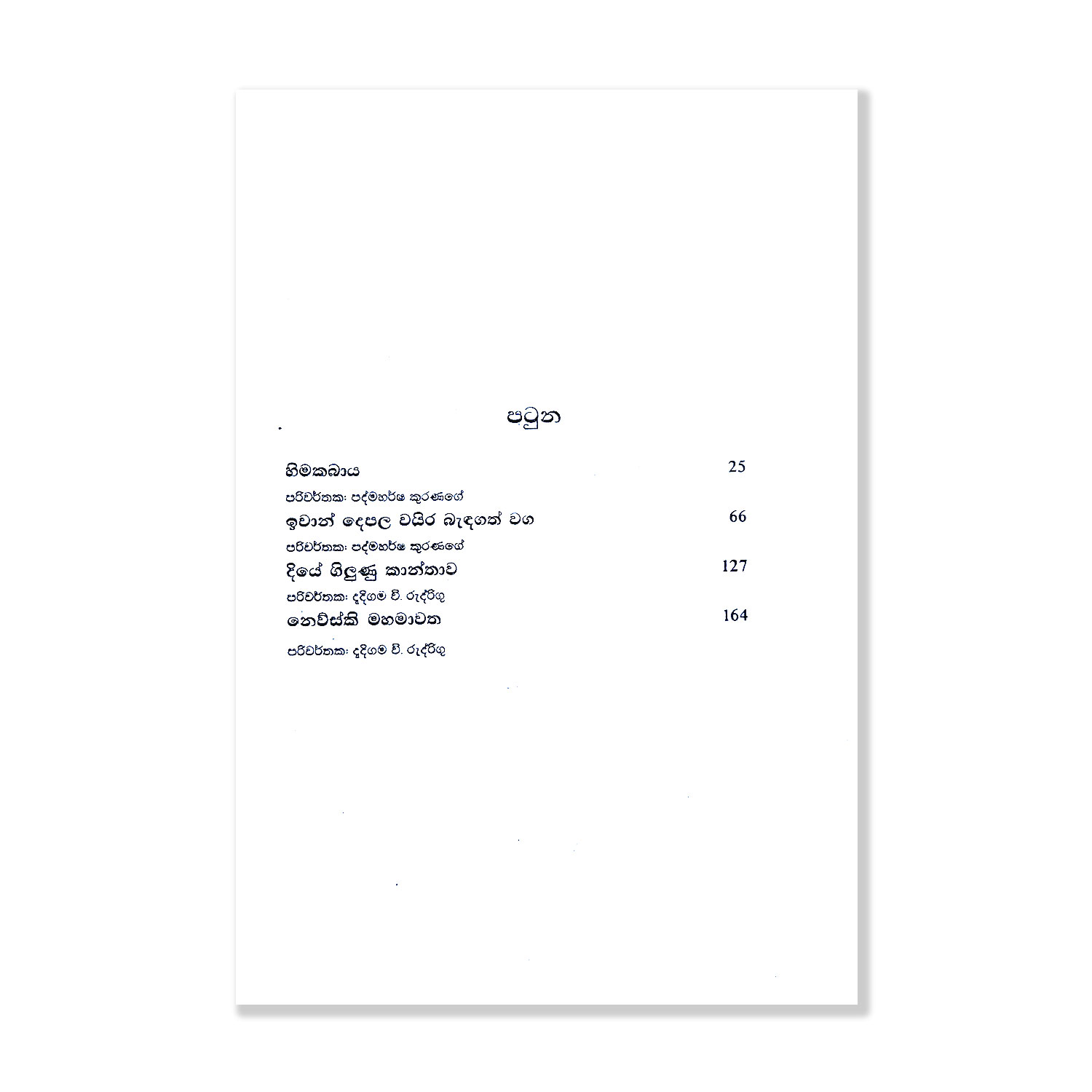 | Translater | : | පද්ම හර්ෂ කුරණගේ සහ දැදිගම වී. රුද්රිගු – Padma Harsha Kuranage and Dadigama V. Rodrigo |